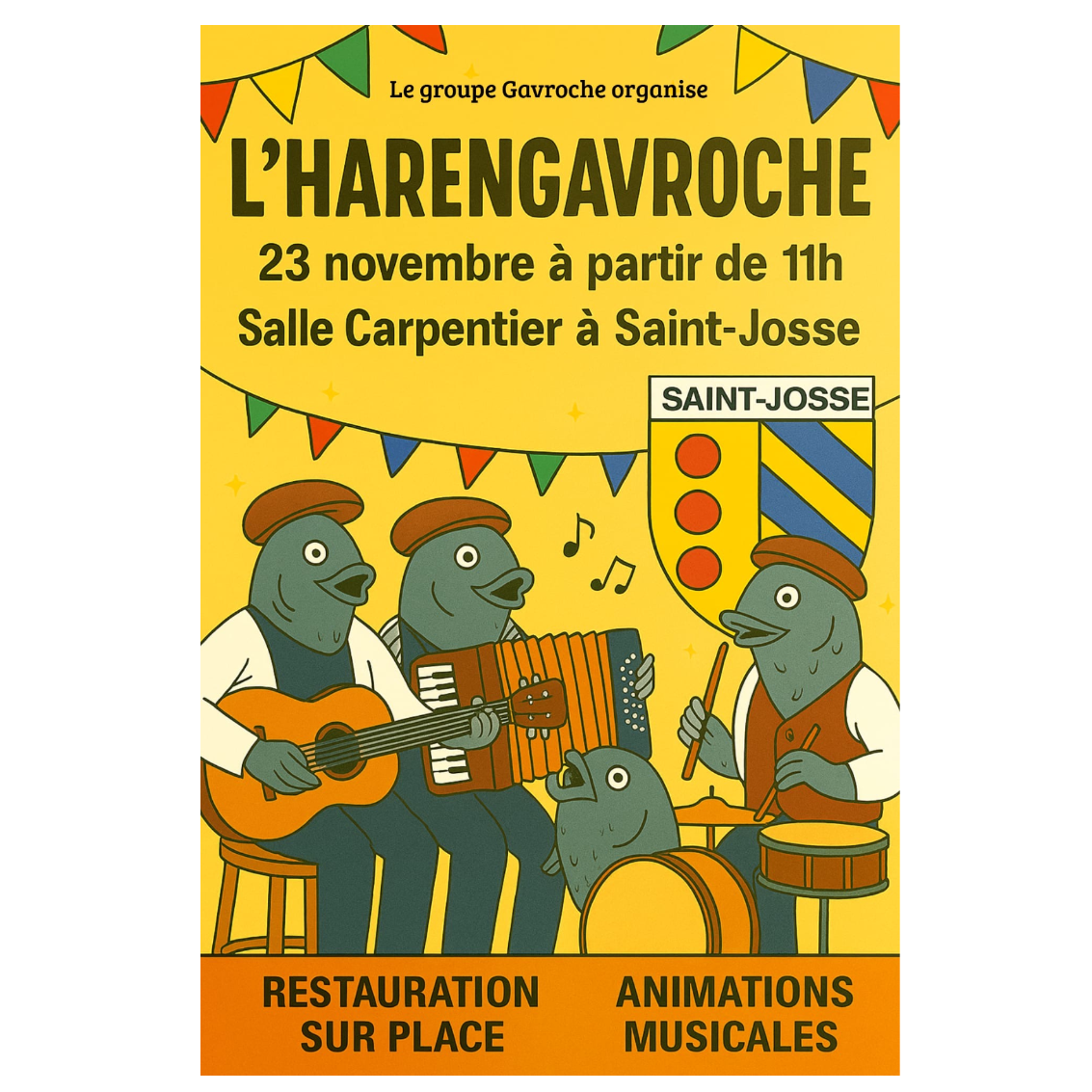 Venez partager un moment chaleureux autour d'un bon repas, d'un verre entre amais, et laissez vous emporter par l'esprit festif de l'harengavroche.