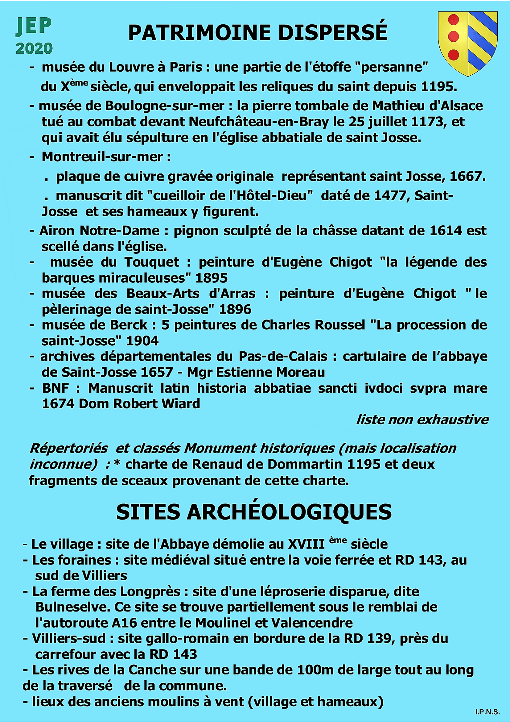 - la "charte sur la translation des reliques de Saint-Josse" de 1195 qui fait référence aux liens historiques de Saint-josse-sur-mer avec les comtés de Boulogne et du Ponthieu ;